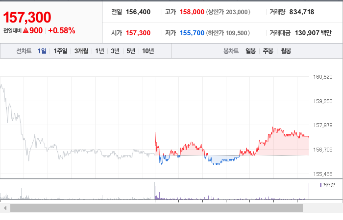 현재 NAVER의 주가는 156,400원으로, 전일 대비 3,900원이 하락했습니다. 주주 현황을 살펴보면 BlackRock Fund Advisors를 포함한 13명이 총 8.23%의 지분을 보유하고 있습니다. NAVER는 인터넷 서비스 기업으로, 현재 주가는 156,400원입니다. 회사의 시가 총액은 25조 5,469억 원이며, 발행된 주식 수는 160,784,508주입니다. 외국인 보유 비중은 42.99%이며, 장중 거래량은 1,035,007주에 달했습니다. NAVER의 매출액은 25,261억 원에 이릅니다.