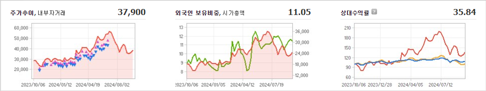 이수페타시스의 현재 주가는 37,900원으로, 전일 대비 1,800원이 하락했습니다. 주주 현황을 보면 이수와 다른 5인이 총 26.59%의 지분을 보유하고 있습니다. 이 회사는 전자 장비 및 기기 분야에서 활동하고 있으며, 현재 주가는 37,900원입니다. 이수페타시스의 시가 총액은 2조 3,970억 원이며, 발행된 주식 수는 63,246,419주입니다. 외국인의 보유 비율은 11.05%이며, 장중 거래량은 1,525,459주에 달했습니다. 이수페타시스의 매출액은 4,044억 원을 기록했습니다.