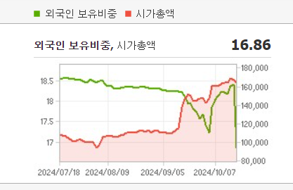 시가 총액과 장중 거래량도 단기 포트폴리오를 구성할 때 살펴봐야 합니다. 고려아연의 시가 총액은 17조595억 원이며 장중 거래량은 179,005원 을 기록했습니다. 대주주의 정보는 크게 중요하지 않을 수도 있지만 장기적인 관점에서는 대주주 정보도 확인해보는 것이 좋겠습니다.