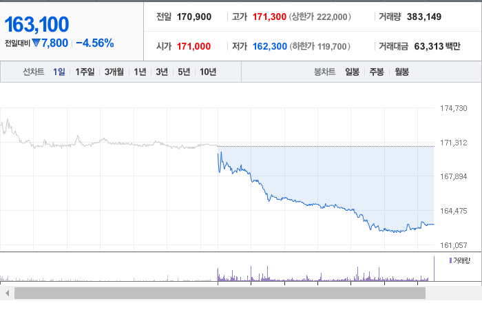 하이브의 현재 주가는 170,900원으로, 전일 대비 1,200원이 하락했습니다. 주주 현황을 보면 방시혁과 8명의 주주가 총 47.43%의 지분을 보유하고 있습니다. 하이브는 미디어 기업으로, 현재 장중 주가는 170,900원입니다. 하이브의 시가총액은 6조 7,935억 원이며, 발행된 주식 수는 41,652,097주입니다. 외국인 보유 비율은 19.96%이며, 장중 거래량은 119,427주에 달했습니다. 하이브의 매출액은 3,609억 원에 이릅니다.