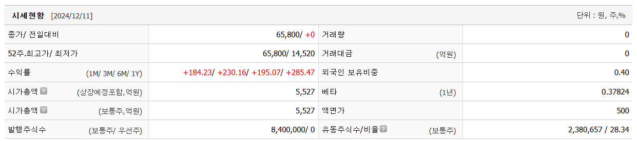 - 한국거래소 규제 주의: 투자경고종목 지정 상태로 추가 규제가 발생할 수 있습니다.