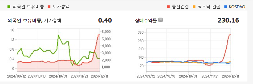 동신건설은 최근 5거래일 연속으로 급등하며 시장의 관심을 받았습니다. 12월 초 종가 20,900원에서 230% 이상 상승하며 테마주의 특성을 여실히 보여주고 있습니다.