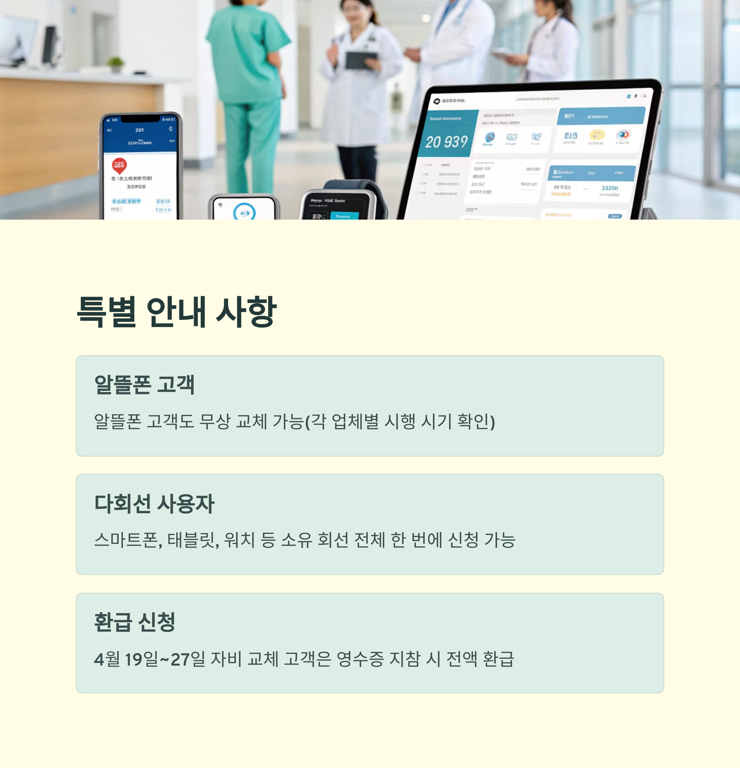- eSIM 사용자 포함, 자비 교체 고객 환급 가능