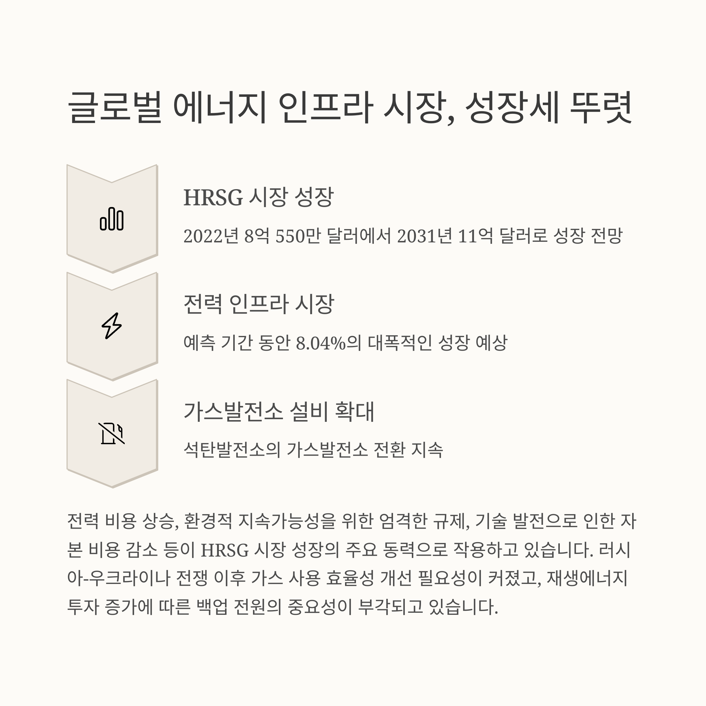 | 산업 환경 | 글로벌 HRSG 및 가스 발전소 시장 성장세 지속 |