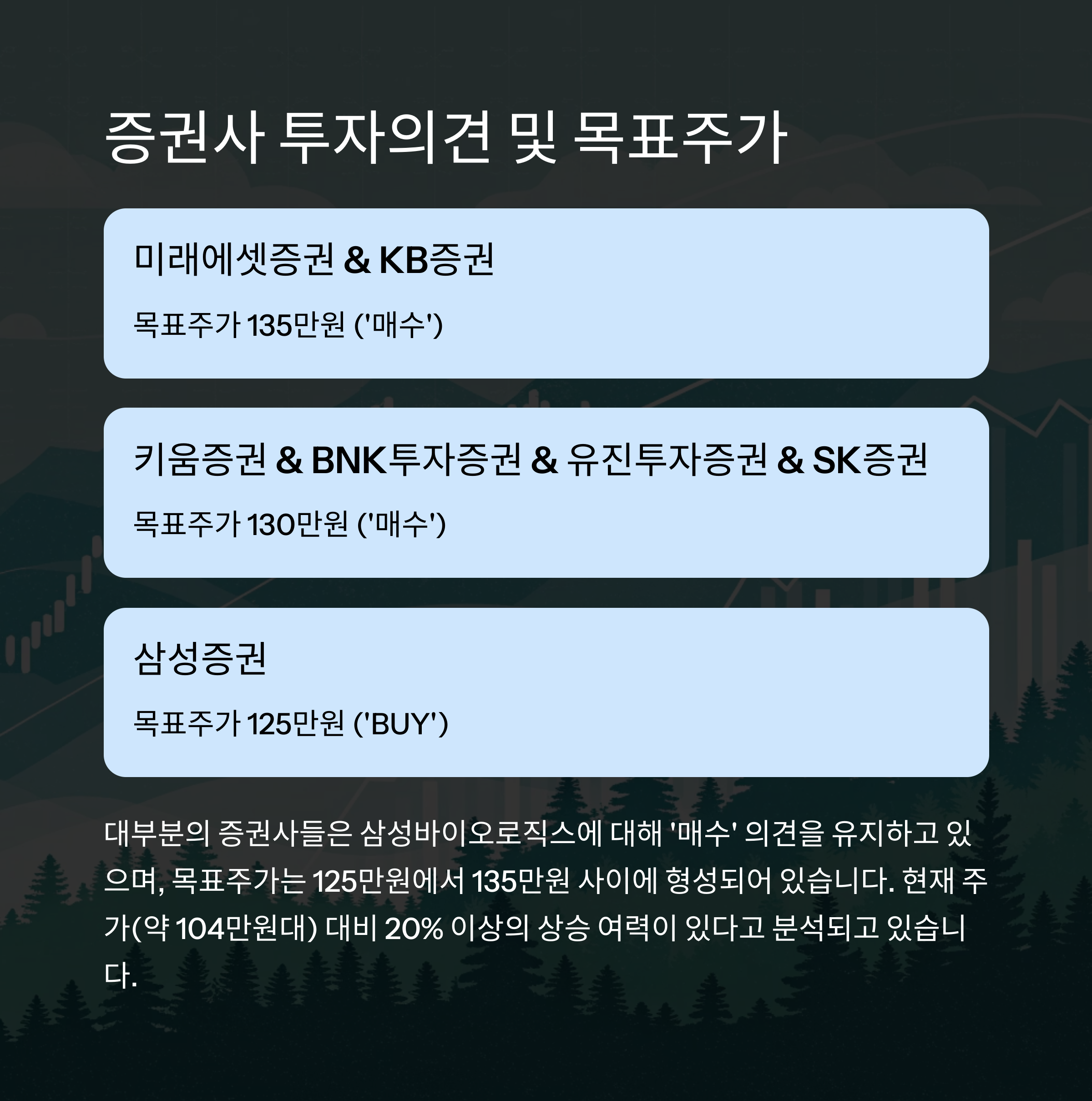증권가에서는 삼성바이오로직스에 대해 여전히 ‘매수’ 의견을 고수하고 있습니다.