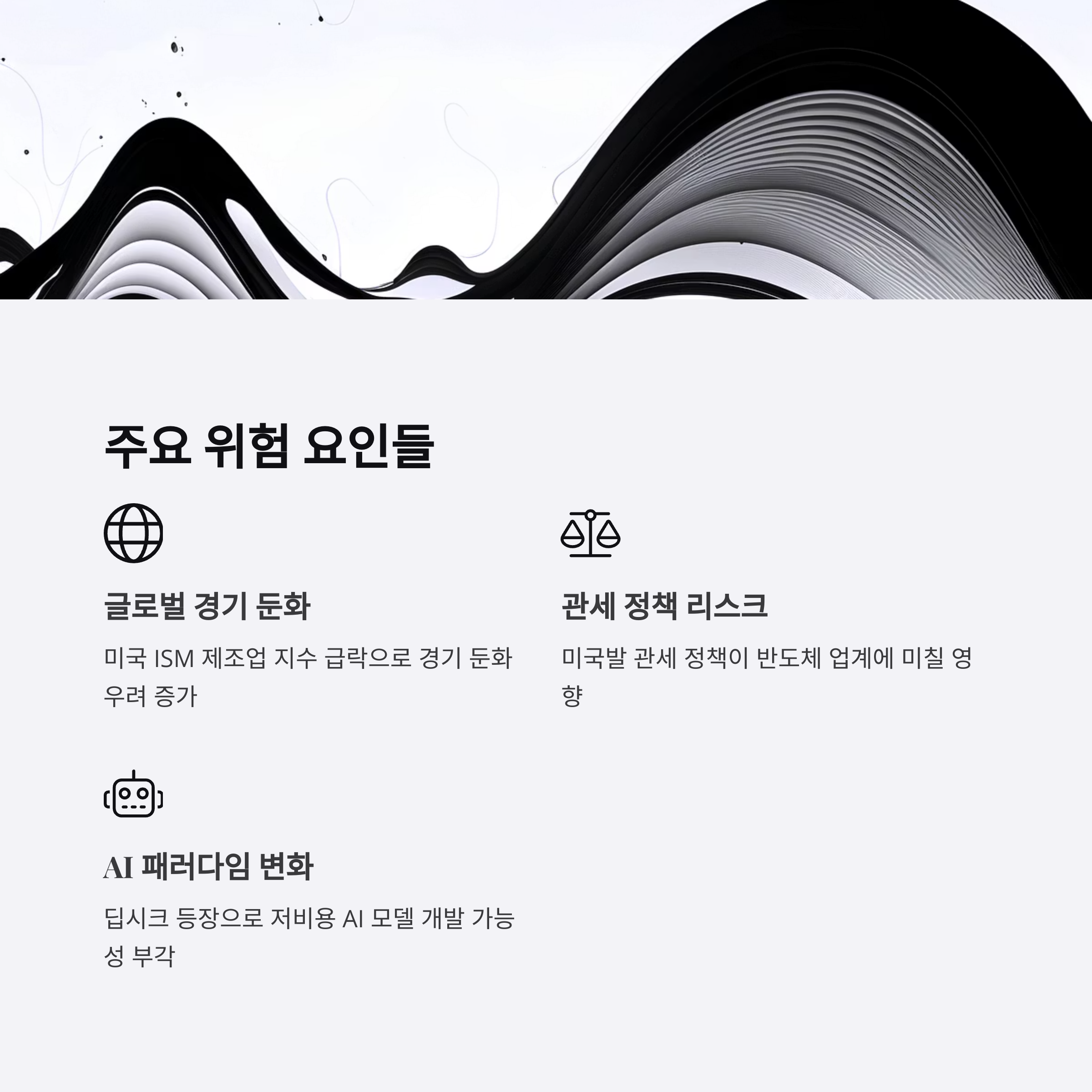 특히 ISM 제조업 지수 하락은 전반적인 수요 둔화를 의미하며, 반도체 수요에도 부정적인 영향을 줄 수 있습니다.