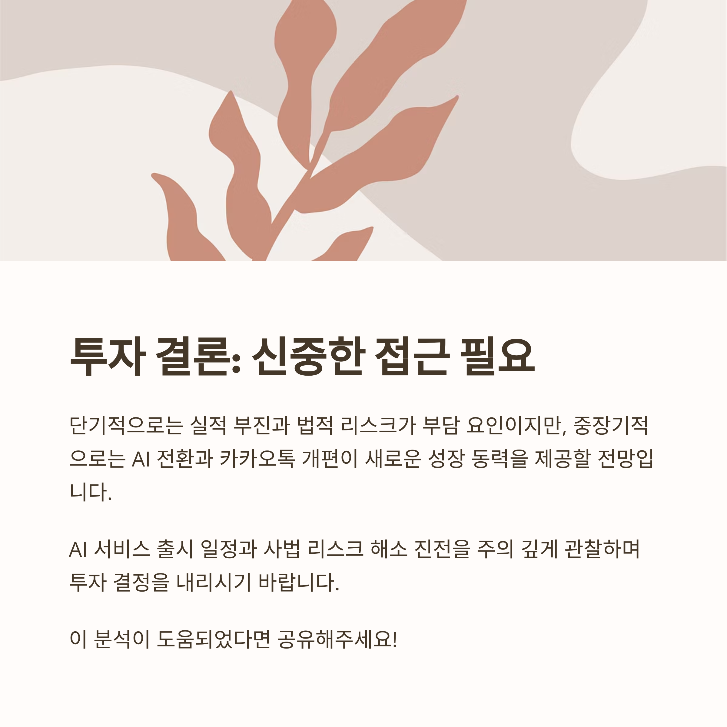 긍정적 입장을 보인 증권사들은 AI 플랫폼과 카카오톡 리뉴얼을 주요 근거로 들고 있으며,