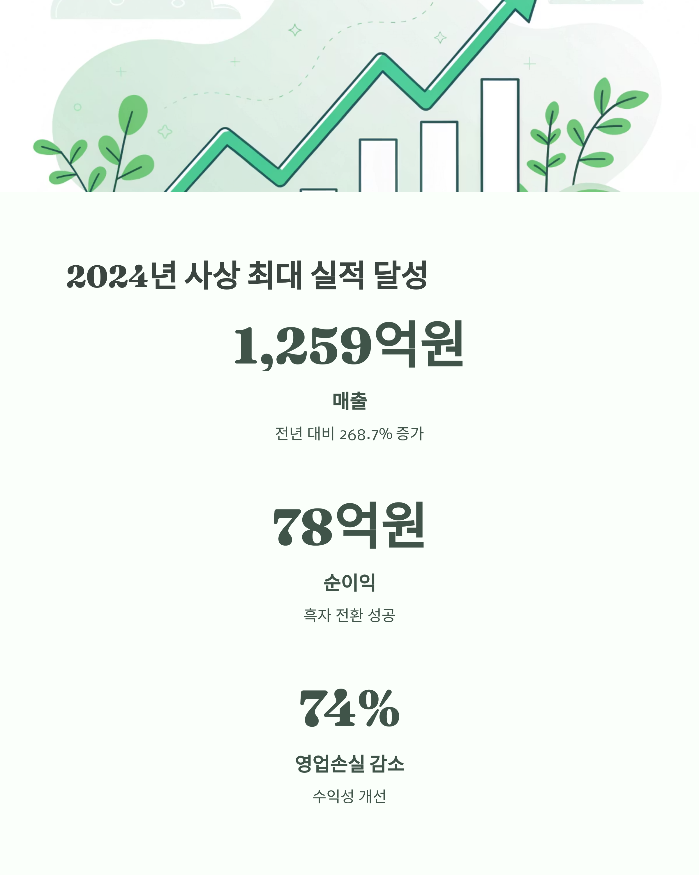 이는 2023년 대비 매출 268.7% 증가, 영업손실 74% 감소로