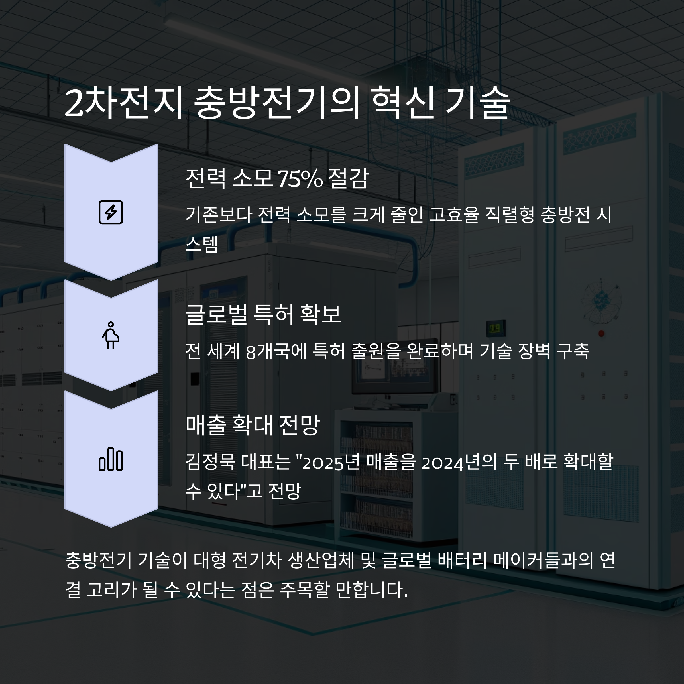 이 시스템은 기존보다 전력 소모를 75% 절감할 수 있는 고효율 기술로, 전지 생산 공정의 에너지 효율을 극대화하며 수요 증가가 기대되는 분야입니다.