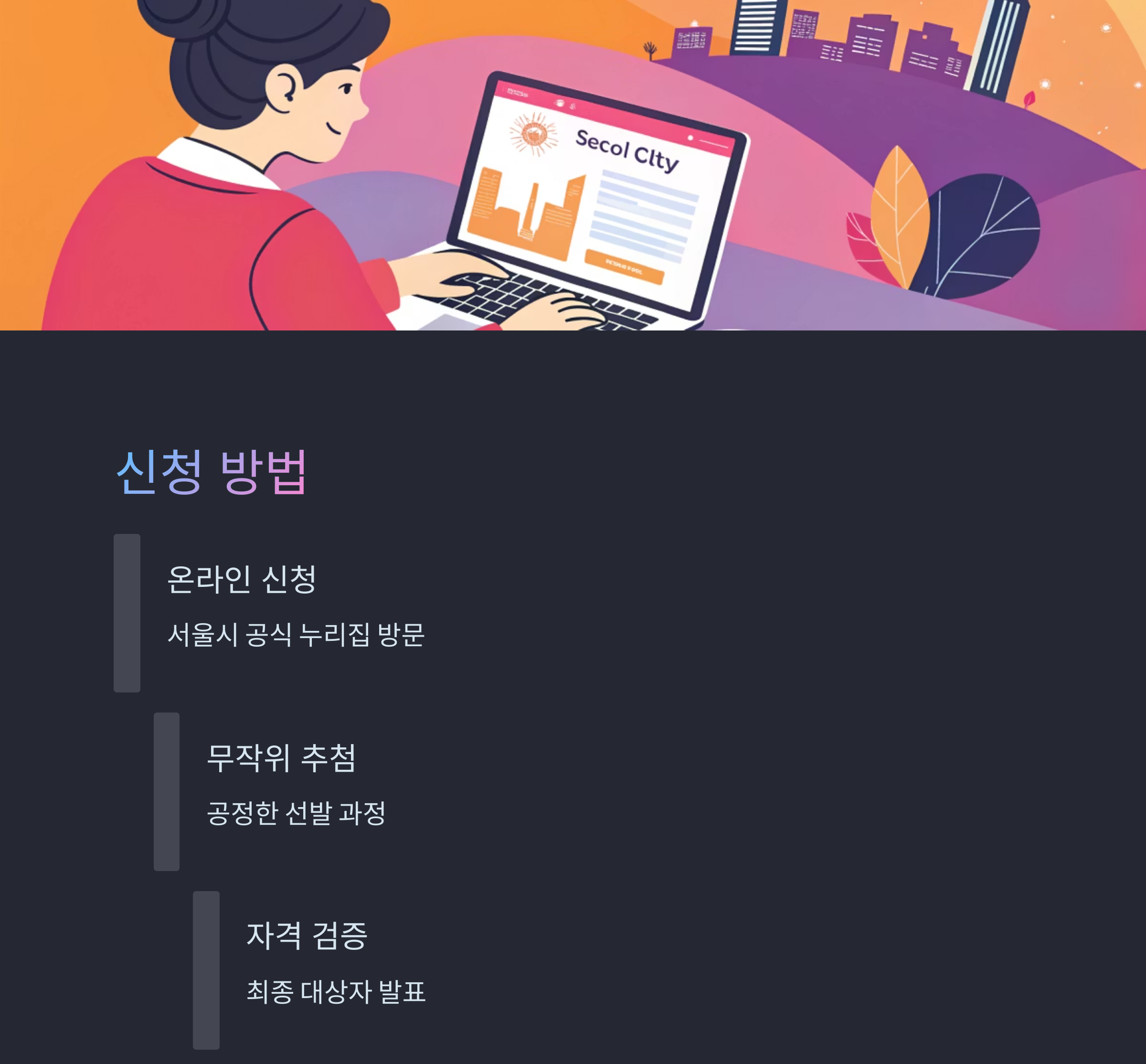 서울시 공식 누리집에서 간단하게 온라인으로 신청할 수 있습니다. 무작위 추첨을 통해 선발되며, 최종 대상자는 자격 검증 후 발표됩니다.