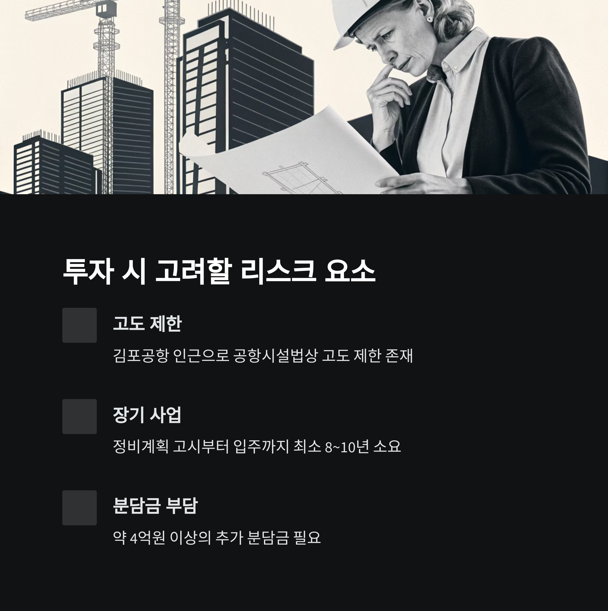 다만 고도 제한, 장기 사업이라는 리스크도 함께 고려해야 하며