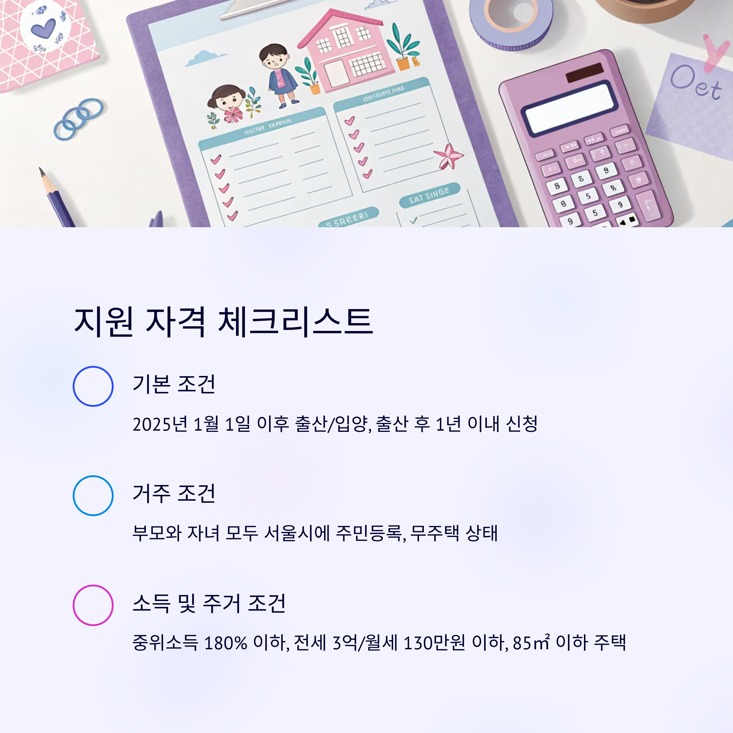 지금부터 서울시 자녀출산 무주택가구 주거비 지원사업의 신청 조건을 확인하는 방법과