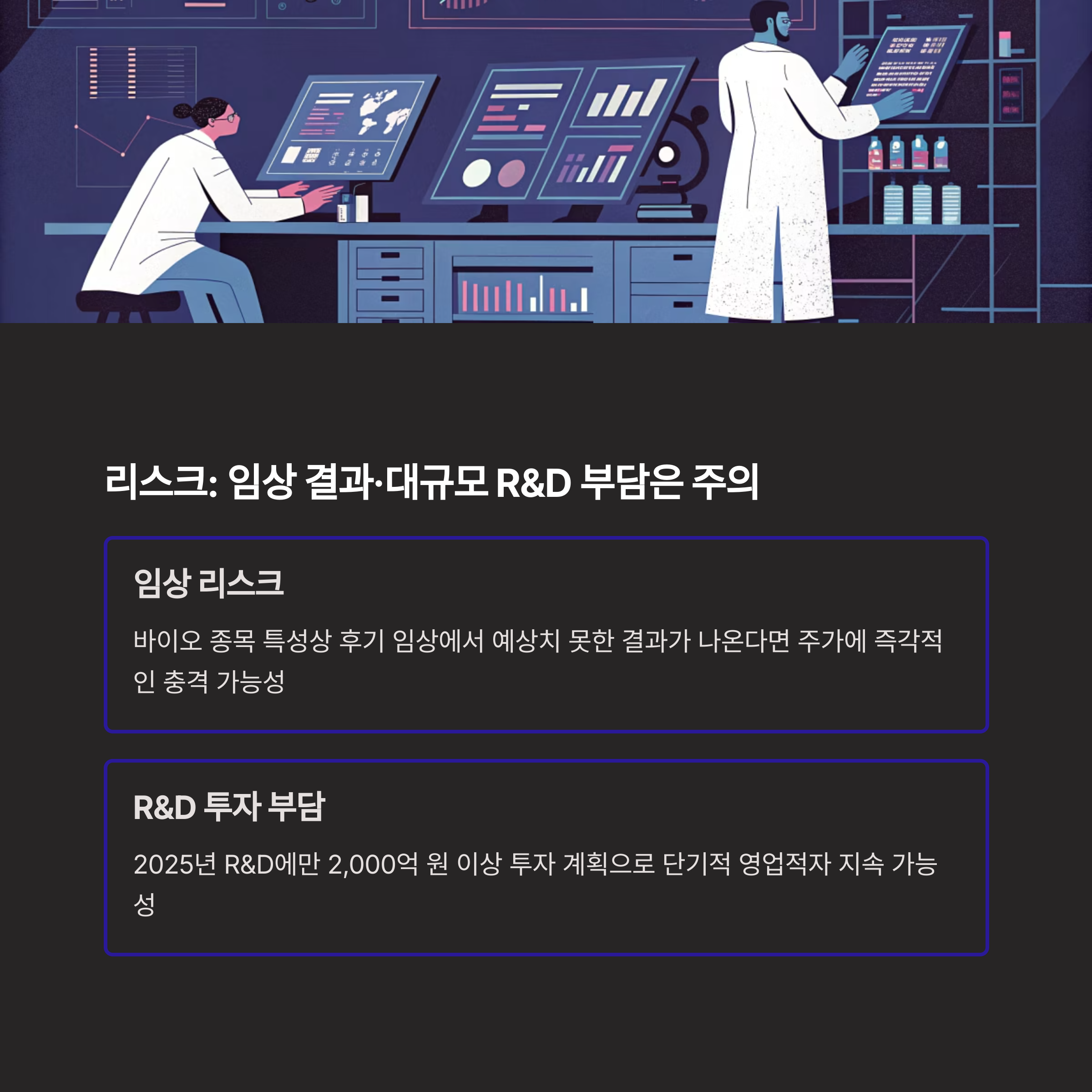 리스크: 임상 결과·대규모 R&D 부담은 주의
