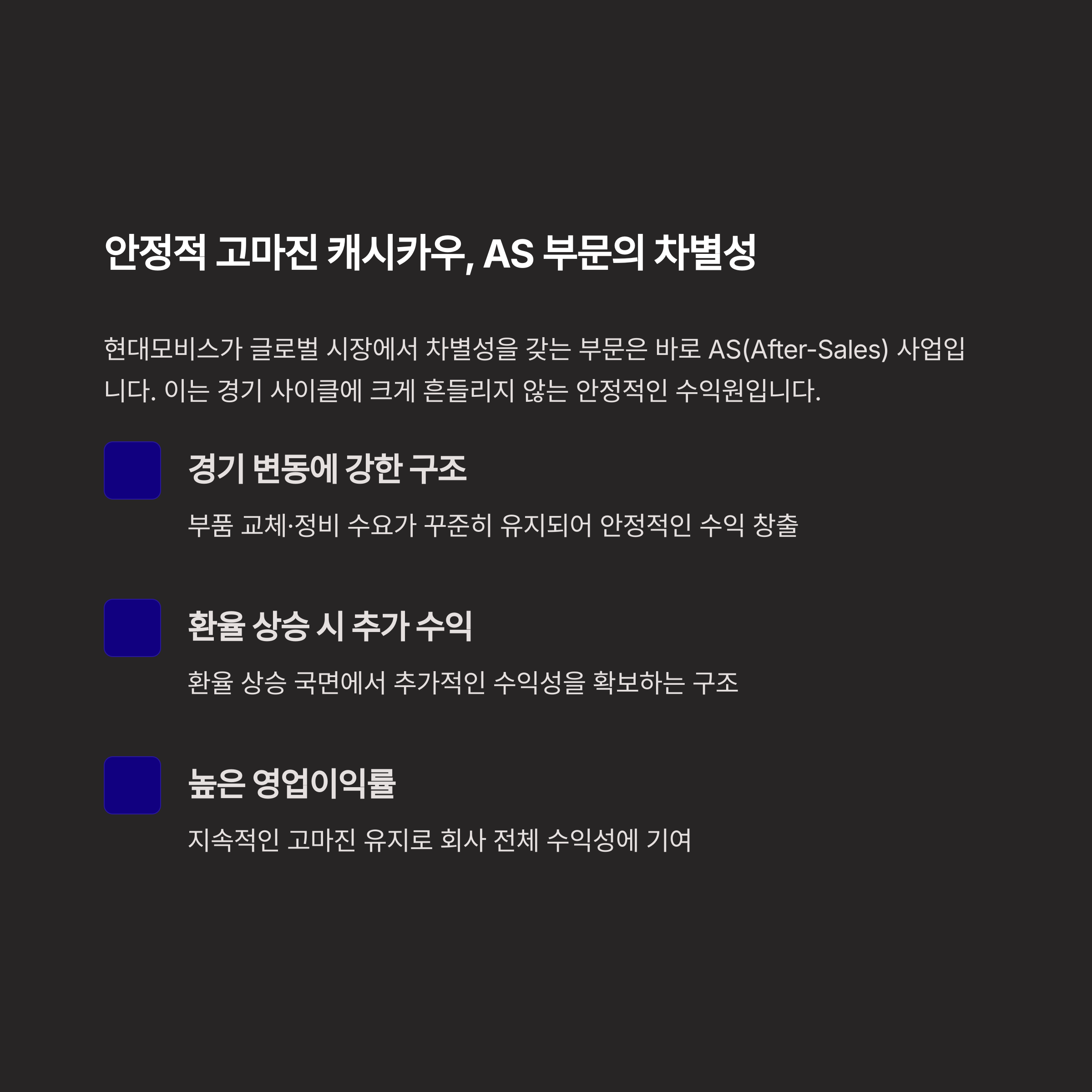 AS(After-Sales) 부문, 안정적 고마진 캐시카우