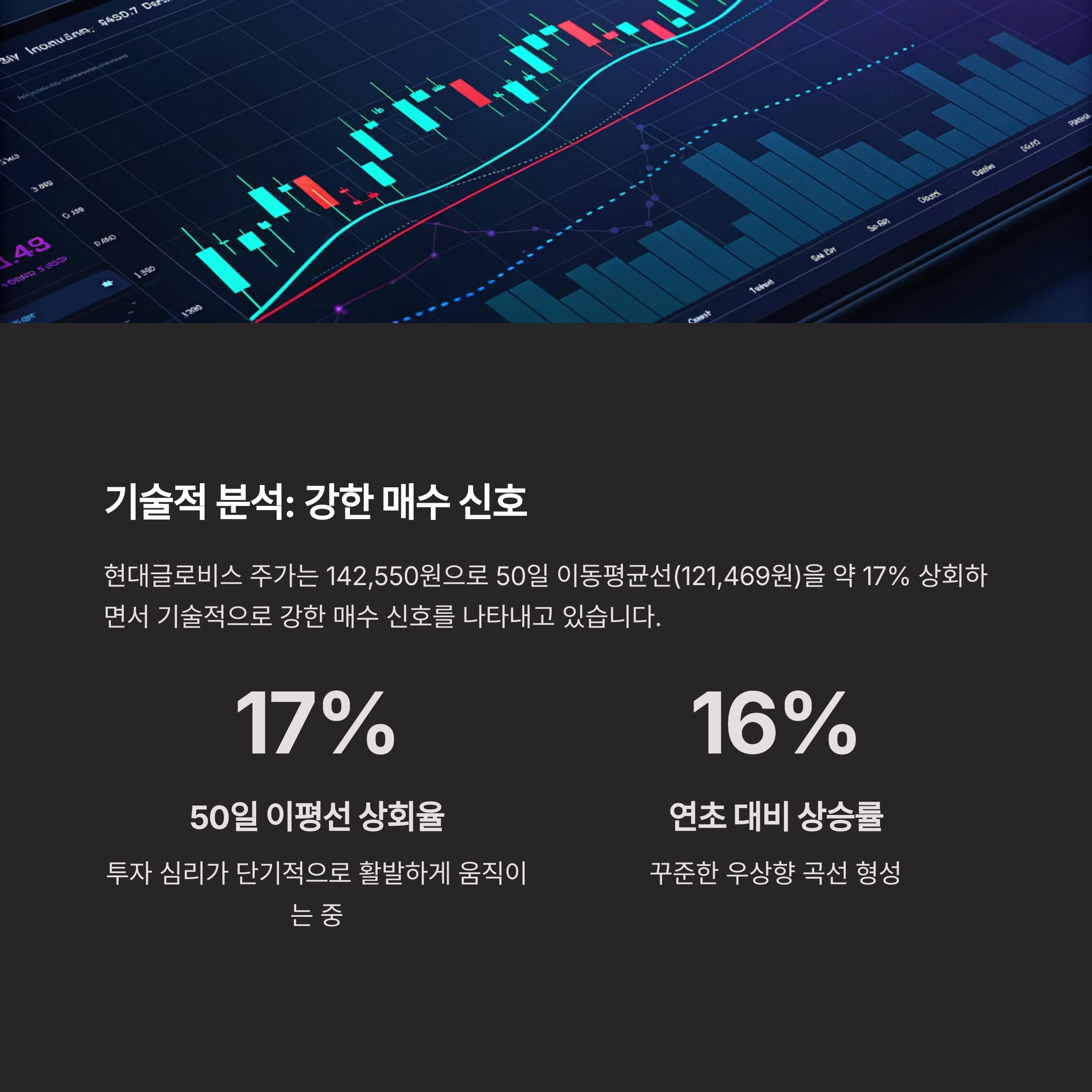 현대글로비스 주가가 14만 원대를 기록하며 단기 기술적 강세를 이어가고 있습니다.