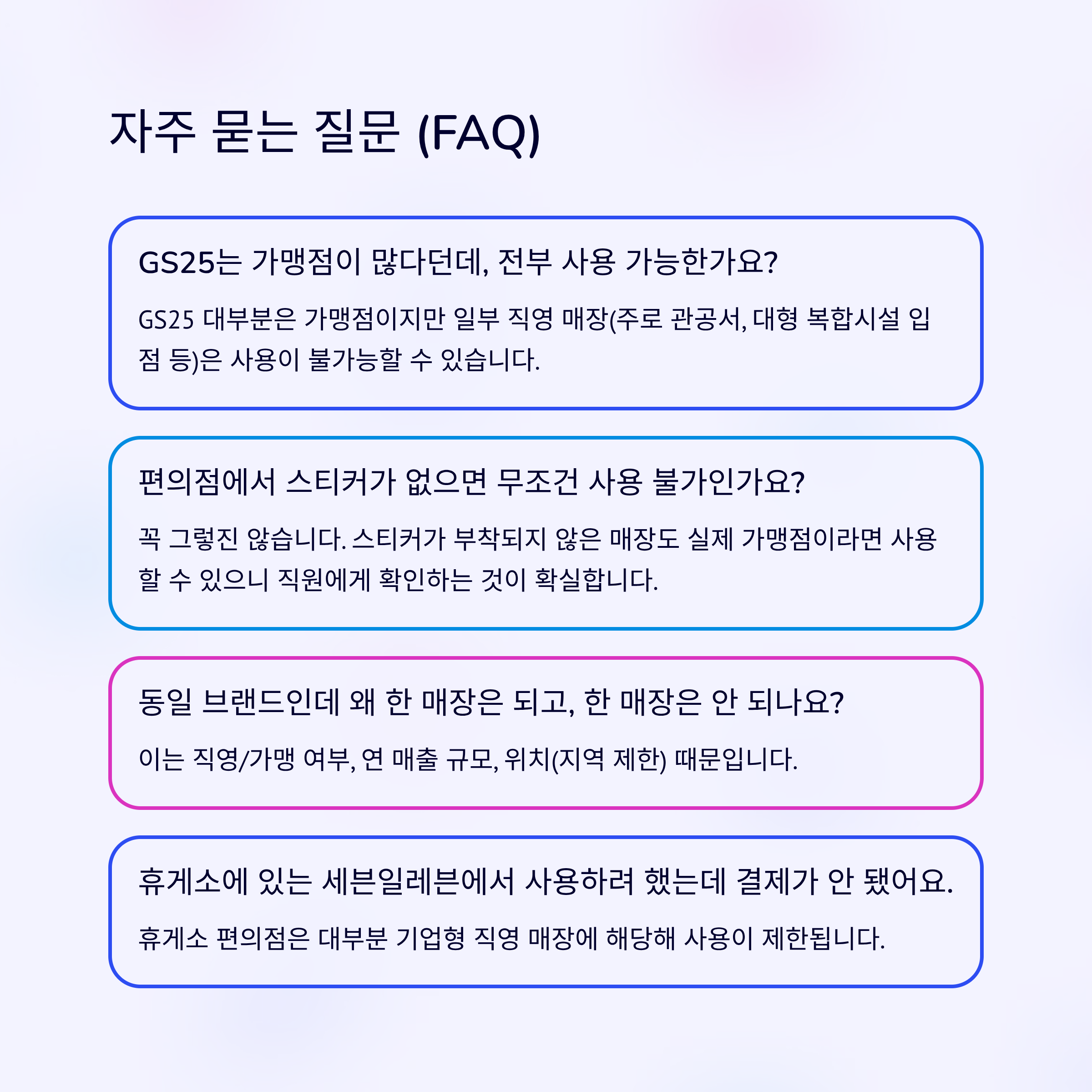 Q1. GS25는 가맹점이 많다던데, 전부 사용 가능한가요?