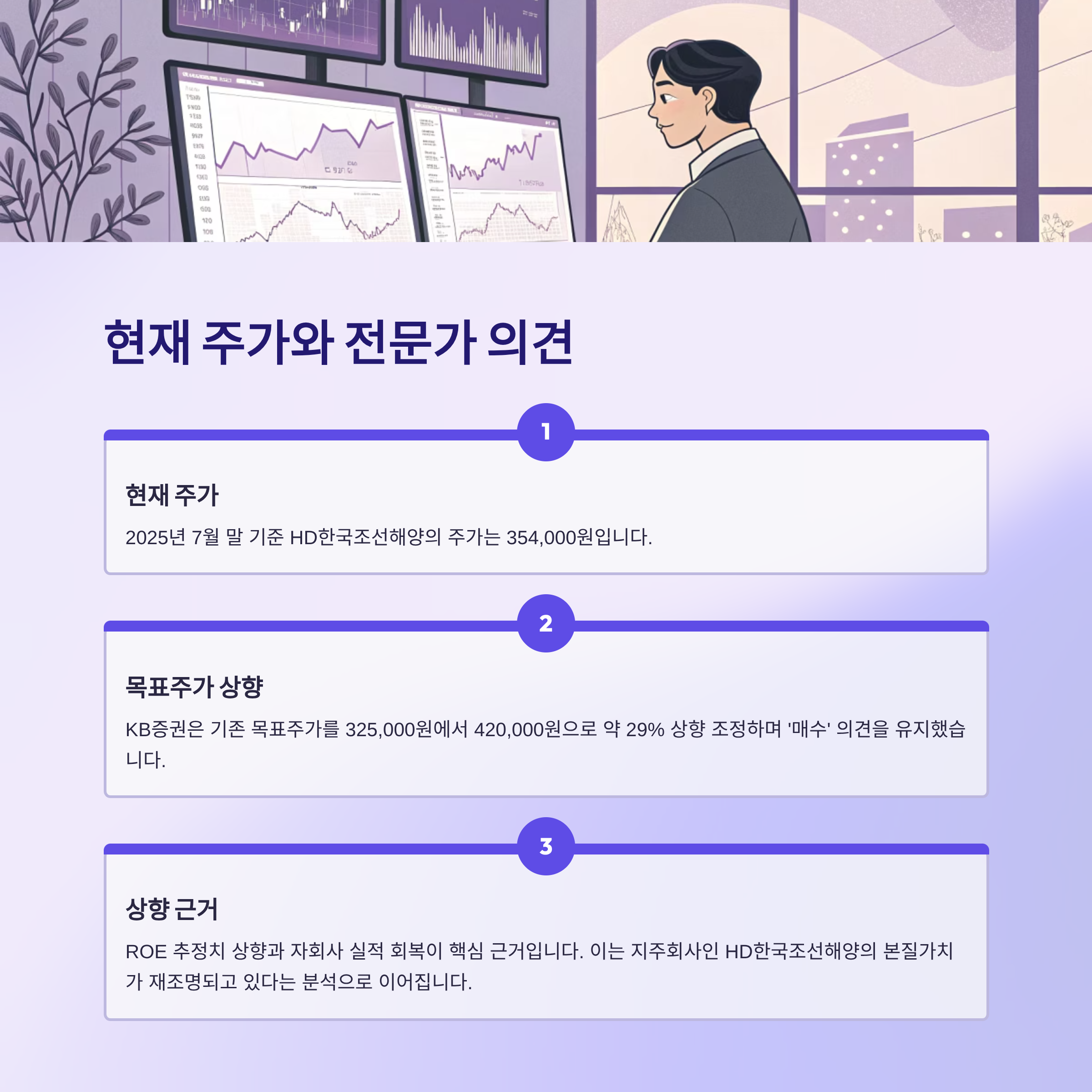 HD한국조선해양은 글로벌 조선업 회복세 속에서 핵심 자회사들의 실적 개선과 함께 주가 재평가가 본격화되고 있습니다. KB증권 등 주요 기관은 목표주가를 상향 조정하며 420,000원 수준의 상승 여력을 제시하고 있으며, 중동 정세와 환율 변수만 완화된다면 장기적인 업사이드가 크다는 분석입니다.