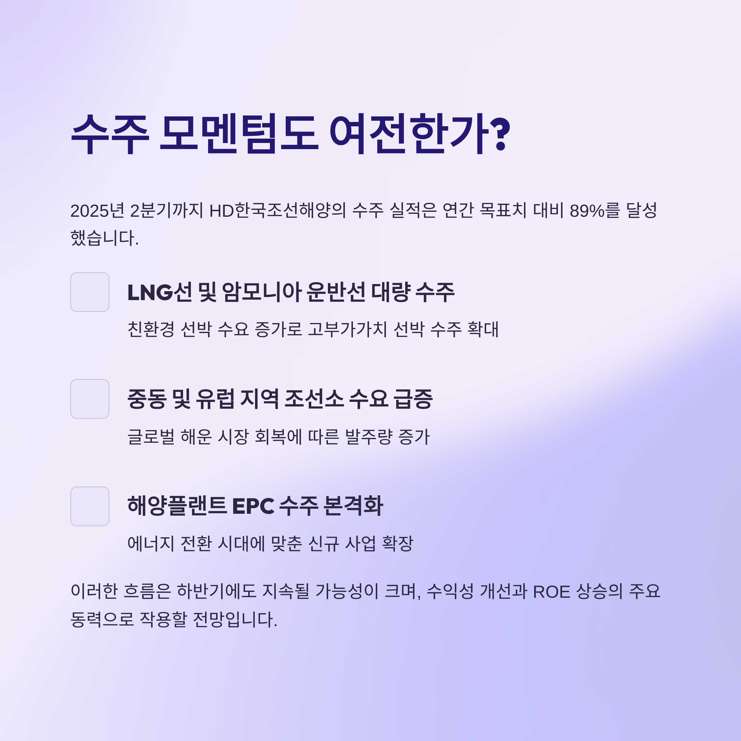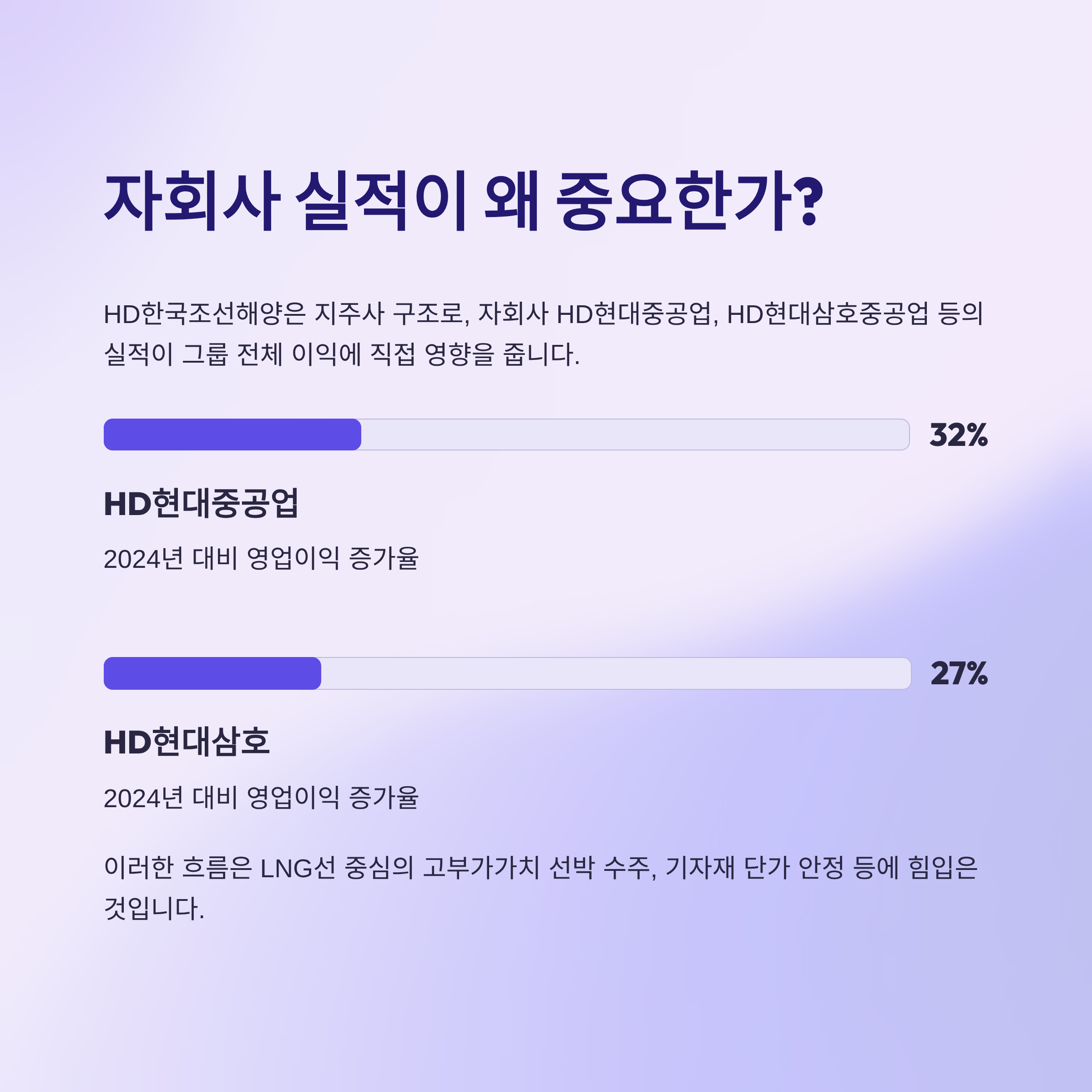 HD현대삼호중공업 등의 실적이 그룹 전체 이익에 직접 영향을 줍니다.