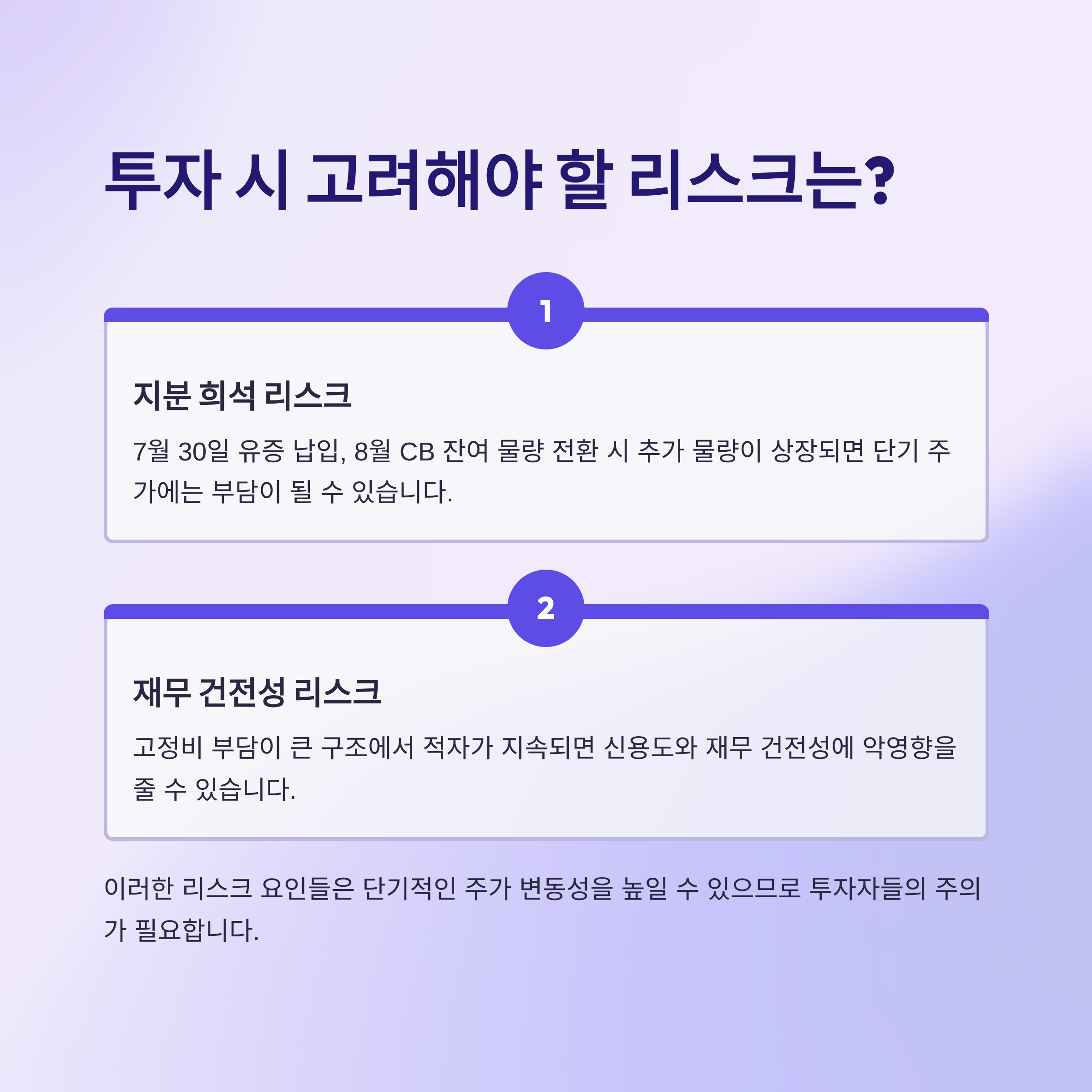 7월 30일 유증 납입, 8월 CB 잔여 물량 전환 시 추가 물량이 상장되면
