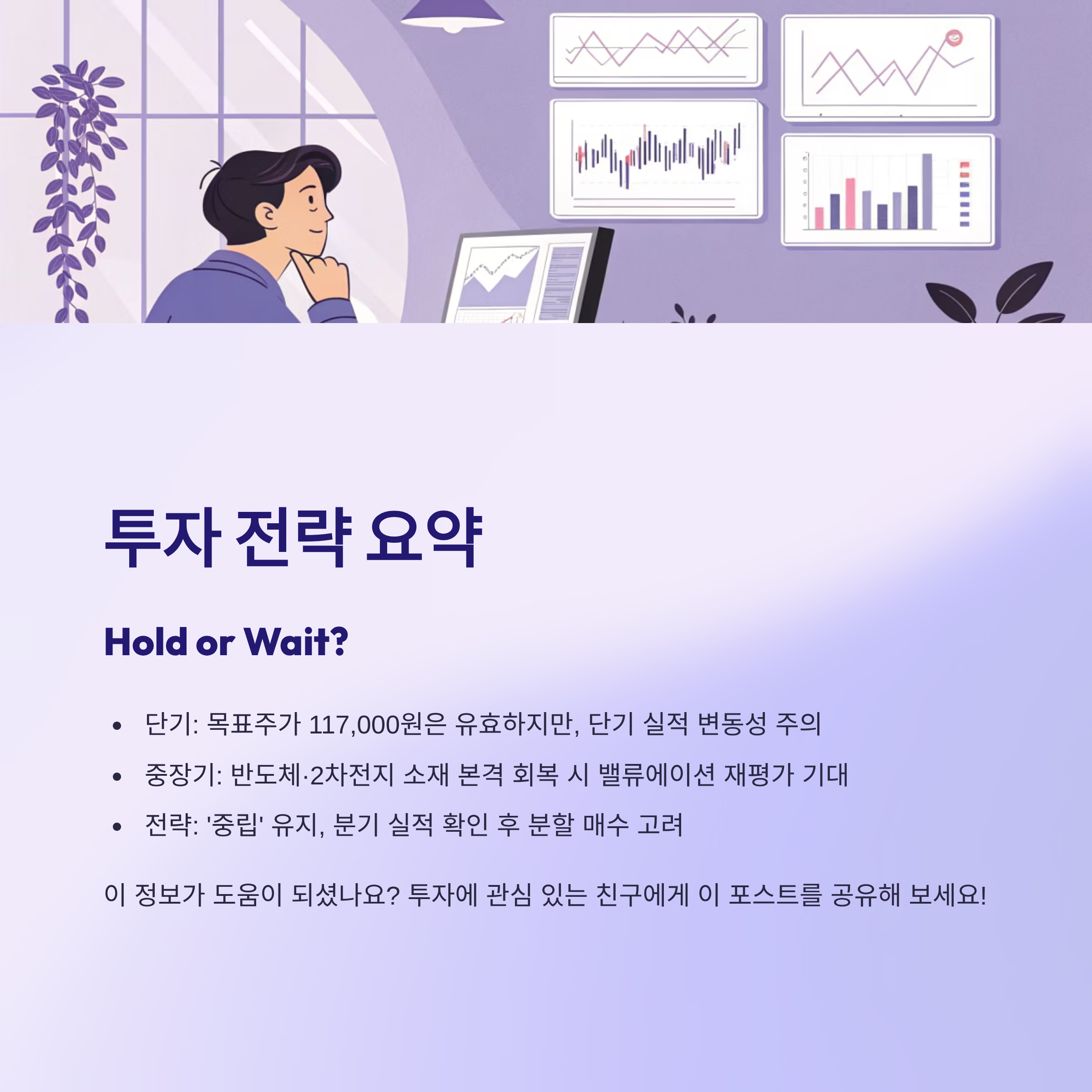 - 단기: 목표주가 117,000원은 유효하지만, 단기 실적 변동성 주의