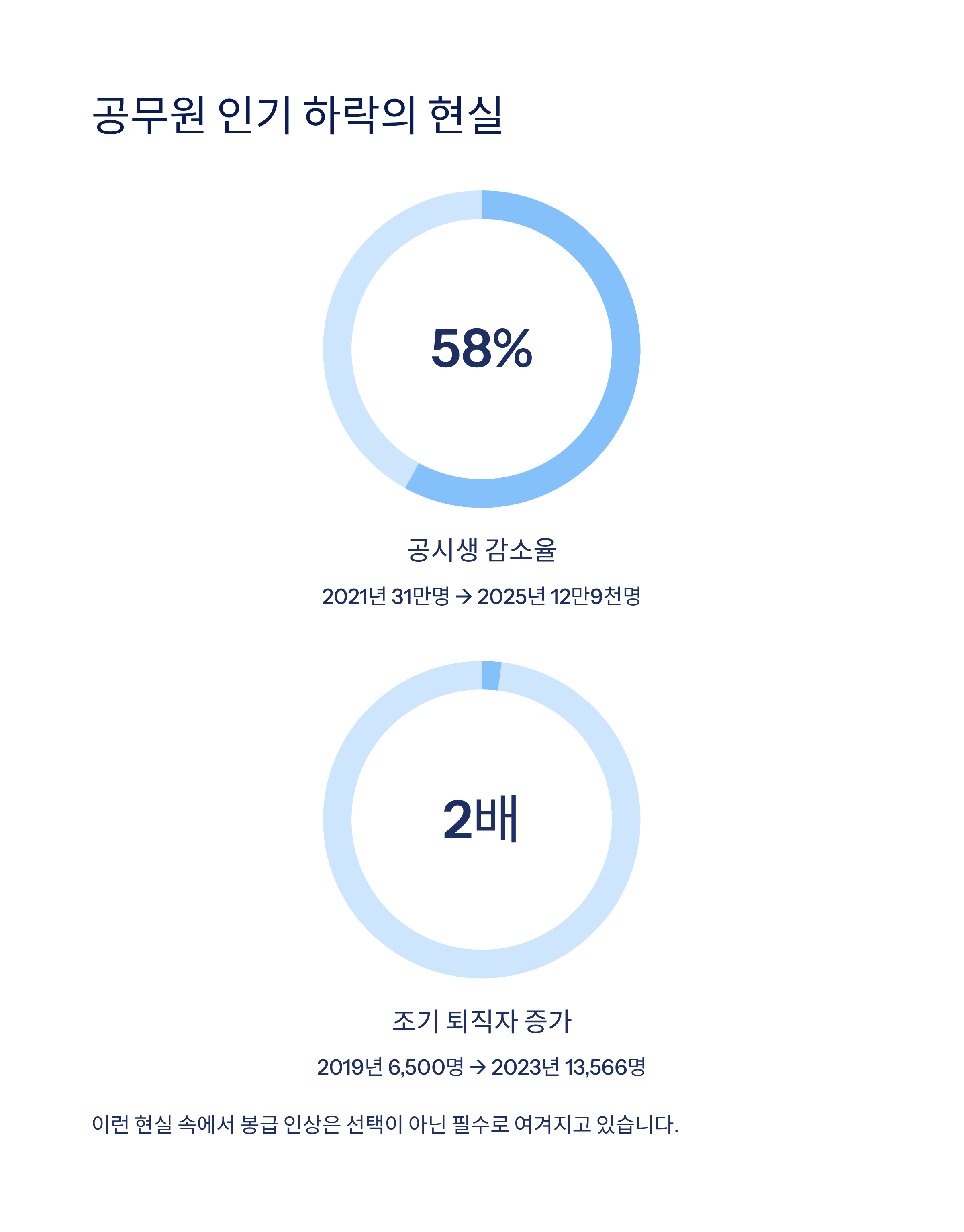 - 공시생 수: 2021년 31만 명 → 2025년 12만 9천 명 (무려 58% 감소)