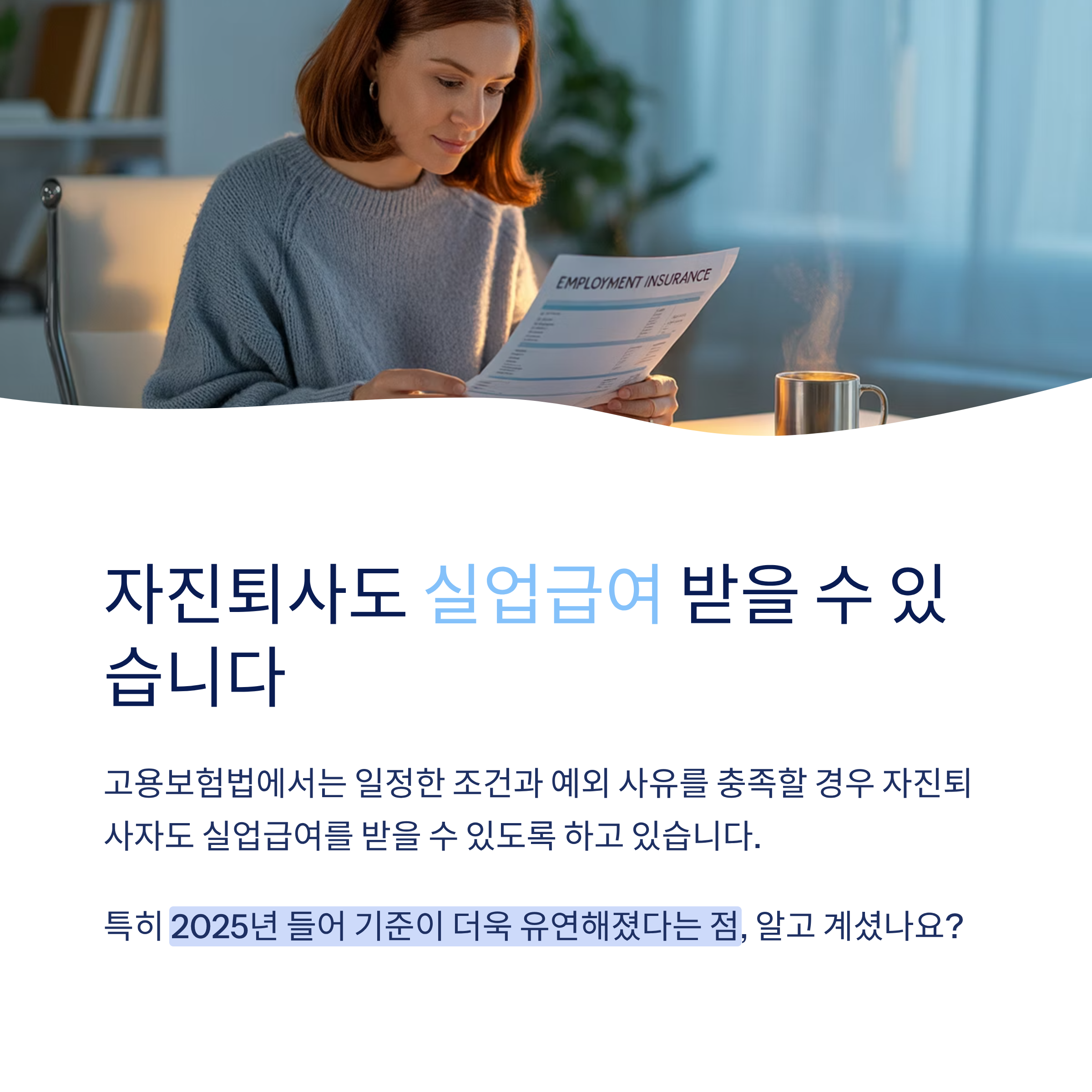 자발적으로 회사를 그만두었다고 해도 무조건 실업급여를 못 받는 건 아닙니다. 고용보험법에서는 일정한 조건과 예외 사유를 충족할 경우 자진퇴사자도 실업급여를 받을 수 있도록 하고 있죠. 특히 2025년 들어 기준이 더욱 유연해졌다는 점, 알고 계셨나요? 이번 글에서는 자진퇴사 실업급여의 예외 조건, 신청 절차, 주의사항까지 한 번에 정리해드립니다.