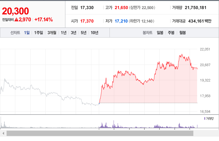 한농화성의 현재 주가는 17,330원으로, 전일 대비 변화가 없는 상태입니다. 주주 현황을 살펴보면, 김응상 씨와 다른 3인이 총 46.03%의 지분을 보유하고 있습니다. 이 회사는 화학 분야에 속하며, 주가는 장중 기준으로 17,330원을 기록하고 있습니다. 한농화성의 시가 총액은 3,174억 원이며, 발행된 주식 수는 15,637,042주입니다. 외국인의 보유 비율은 1.08%이며, 장중 거래량은 8,990,998주에 달했습니다. 또한, 한농화성의 매출액은 1,341억 원에 이릅니다.