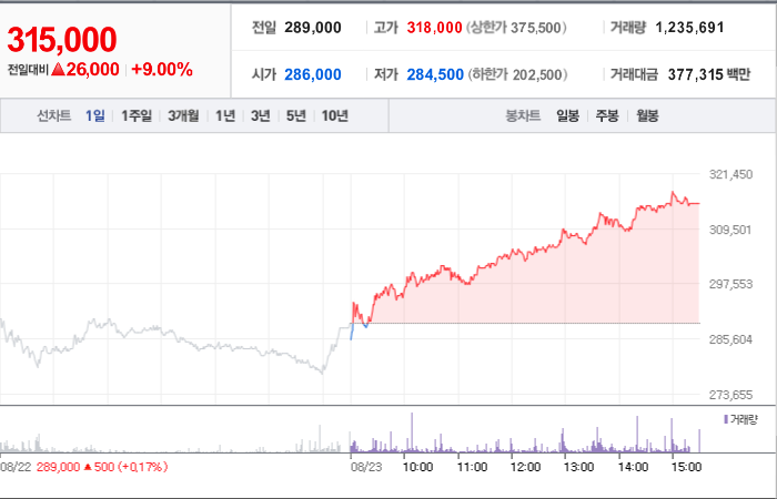 현재 알테오젠의 주가는 315,000원으로, 전일 대비 변화가 없는 상태입니다. 주주 현황을 살펴보면 박순재 외 3인이 20.51%의 지분을 보유하고 있습니다. 알테오젠은 바이오 기업으로, 현재 장중 주가는 315,000원입니다. 이 회사의 시가 총액은 16조 7,418억 원이며, 발행된 주식 수는 53,148,528주입니다. 외국인 투자자의 보유 비중은 14.56%이며, 장중 거래량은 1,244,378주에 달했습니다. 또한, 알테오젠의 매출액은 471억 원에 이릅니다.
