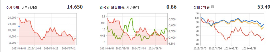 케이엔솔의 현재 주가는 14,650원으로, 전일 대비 420원이 하락했습니다. 주주 현황을 살펴보면, 이 회사는 51.42%의 지분을 보유하고 있습니다. 케이엔솔은 기계 산업에 속하는 기업으로, 장중 주가는 14,650원입니다. 이 회사의 시가총액은 2,336억 원이며, 발행된 주식 수는 12,999,807주입니다. 외국인 보유 비율은 0.86%이며, 장중 거래량은 133,060주에 달했습니다. 케이엔솔의 매출액은 1,168억 원을 기록했습니다.