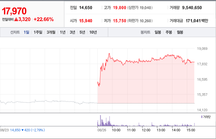 케이엔솔, 4거래일만에 23% 급등…1만8000원선 회복