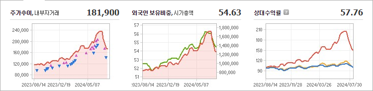 현재 SK하이닉스의 주가는 181,900원으로, 전일 대비 21.93원이 하락한 상태입니다. 주주 현황을 보면 에스케이스퀘어와 그 외 8인이 총 20.07%의 지분을 보유하고 있습니다. SK하이닉스는 반도체 및 관련 장비를 전문으로 하는 기업으로, 현재 장중 주가는 181,900원입니다. 이 회사의 시가총액은 약 135조9180억 원이며, 총 발행 주식 수는 728,002,365주입니다. 외국인의 보유 비율은 54.63%로 나타나고 있으며, 장중 거래량은 4,234,287주에 달합니다. 최근 매출액은 124,296억 원에 이르렀습니다.